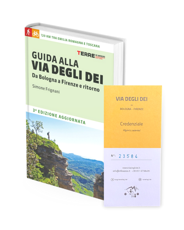 In der Mappe mit dem Berechtigungsnachweis und dem offiziellen Führer auf Italienisch finden Sie den offiziellen Führer zur Via Francigena. Der Führer enthält alle unentbehrlichen Informationen, die Sie brauchen, um sich auf den Weg zu machen. Entdecken Sie detaillierte Karten, Höhenangaben, eine schrittweise Beschreibung der Route, offizielle Varianten, Übernachtungsmöglichkeiten und Sehenswürdigkeiten.