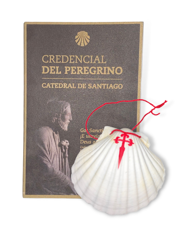 Das Kit besteht aus dem Pilgerpass und der Pilgermuschel für Pilger auf dem Jakobsweg.