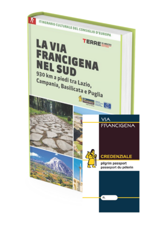 Trouvez la Conchiglia di Santiago sur le sac à dos ou sur les routes avec la flèche jaune pour indiquer le chemin