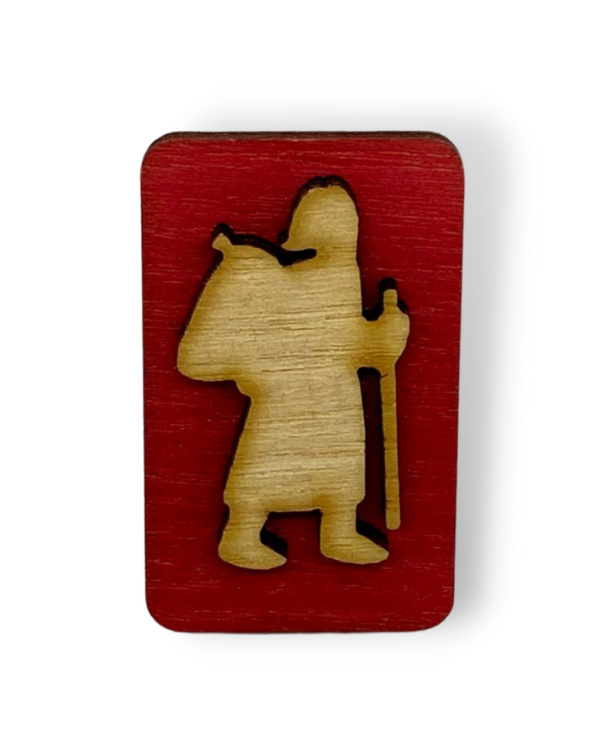 Notre broche est en bois naturel avec l’effigie du pèlerin, symbole de la Via Francigena, à appliquer sur votre sac à dos ou sur le Pull avec polaire interne Via Francigena.