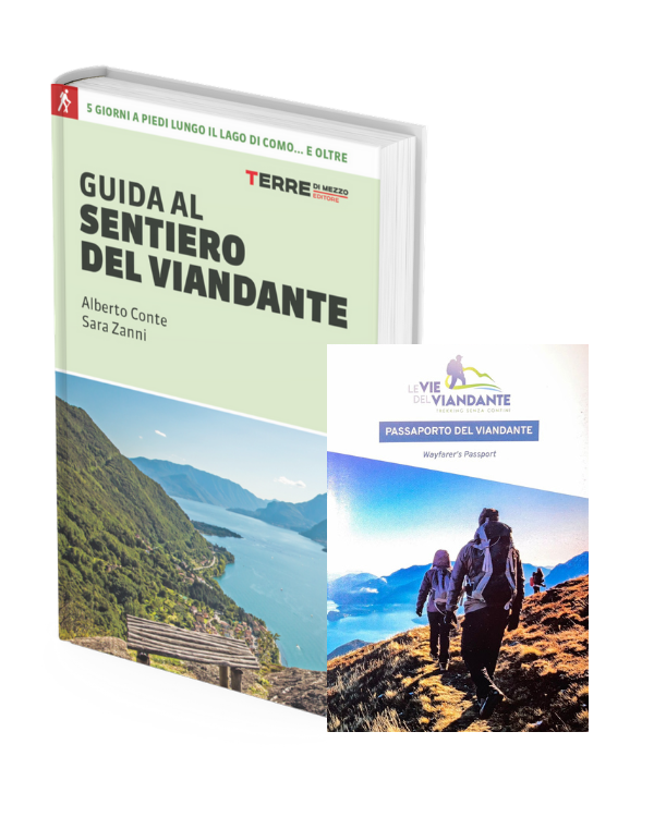 Le Kit Sentiero del Viandante : Accréditation et guide officiel en italien contient le guide officiel en italien et l’accréditation du Sentiero del Viandante avec des espaces pour les timbres et des informations essentielles pour le voyage.