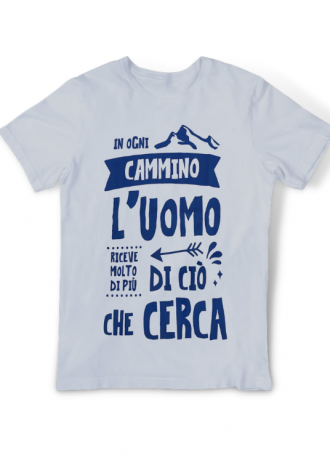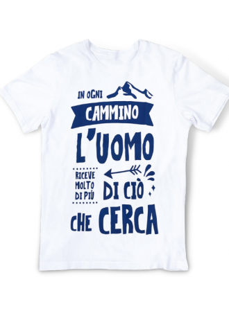 Le T-Shirt officiel Via degli Dei est 100% technique, respirant et légèrement transparent, il est blanc avec le logo Camino.