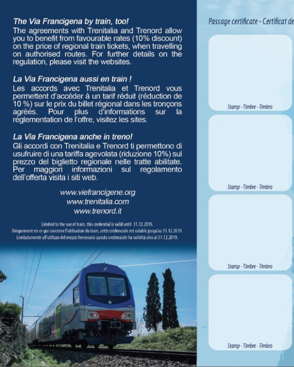 La credenziale è unica per tutte le Tappe del celebre percorso dall’Inghilterra alle ultime tappe della Via Francigena in Italia.