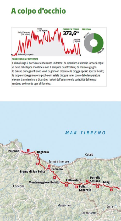 La guida in italiano da Palermo a Messina mostra e descrive un nuovo percorso per scoprire il fascino di una Sicilia nascosta. A piedi in una terra di emiri e cavalieri, sulle tracce del Gran Conte Ruggero I e dell’imperatore Carlo V.